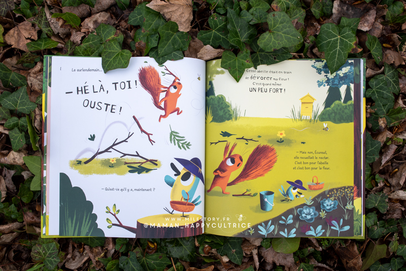 Le personnage principal, Écureuil, est vraiment très drôle avec ses phrases amusantes et son désir de protéger sa petite fleur jaune à tout prix ! Cette histoire enseigne aux enfants l’importance de prendre soin de la nature tout en reconnaissant les différences et en apprenant à les accepter (dans le livre, Écureuil veut par exemple protéger la fleur de la pluie, alors qu’elle en a besoin pour vivre).